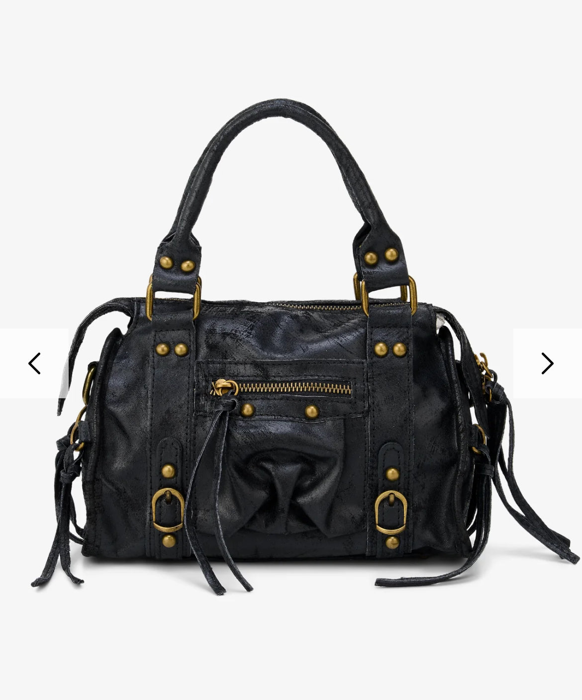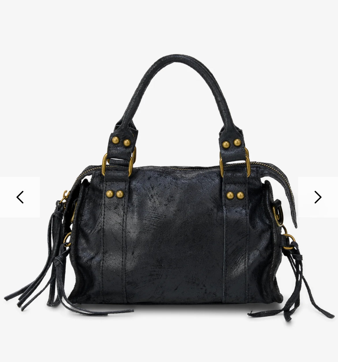 Δερμάτινη τσάντα χειρός με φερμουάρ. Έχει αποσπώμενο λουρί στην ίδια απόχρωση, μια εσωτερική Και μια εξωτερική θήκη με φερμουάρ και διακοσμητικά κρόσσια.